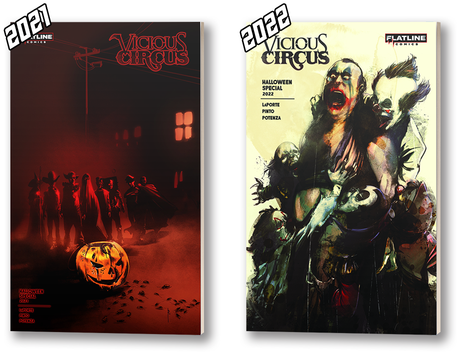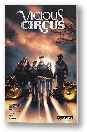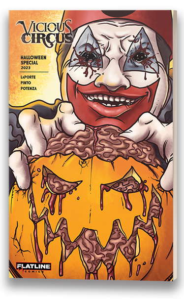 The Vicious Circus 2023 Halloween Special is a 24-page, self-contained tale of your favorite anti-hero killer clowns, firmly entrenched in the trappings and feel of our favorite holiday. The Halloween Special is written by Vicious Circus co-creator Kevin LaPorte (that’s me!) and illustrated by Oscar Pinto (Heavy Metal), with colors by Vito Potenza (Vicious Circus: Satanic Panic; Scissor Sisters).