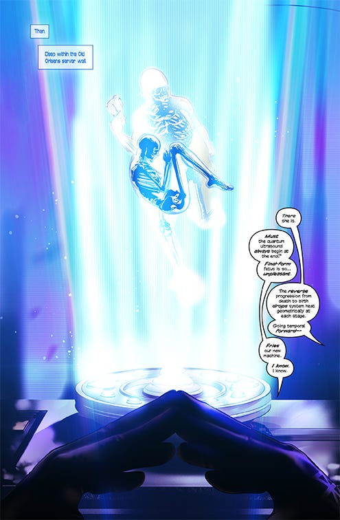 Meanwhile, the father, his consciousness exiled from his body to the dark web, embarks on a mission to recover their surviving memory engrams, so he can restore their quantum consciousnesses and save them from deleted oblivion.