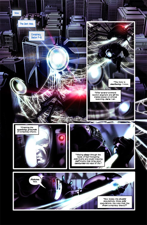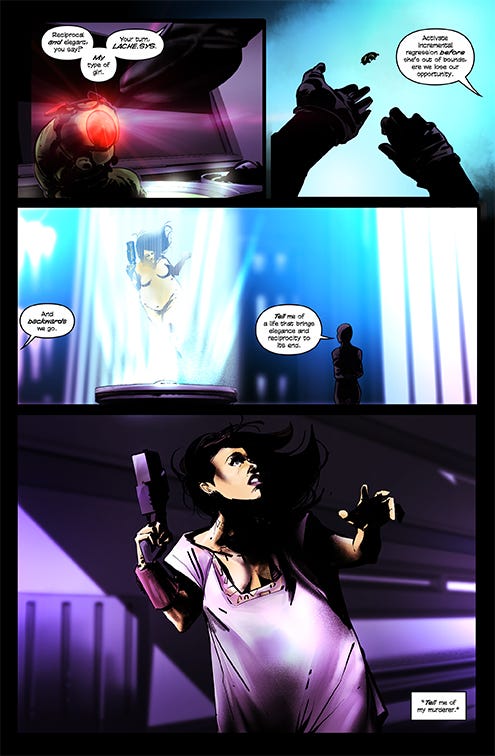 Darkwoven has been in development for much of the latter half of 2025, and the first issue is finally ready. This new hard science fiction comic book series is equal parts dark cyberpunk and epic fantasy with direct parallels to real horrors in our modern world. Story & script by me. Art by Oscar Pinto. Color by Vito Potenza.